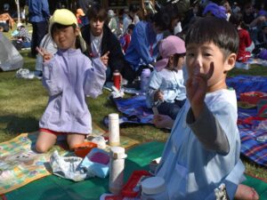 虹組さんはお菓子を幼児組さんに配ったり、鳥・花組さんにお菓子をもらったり…💗