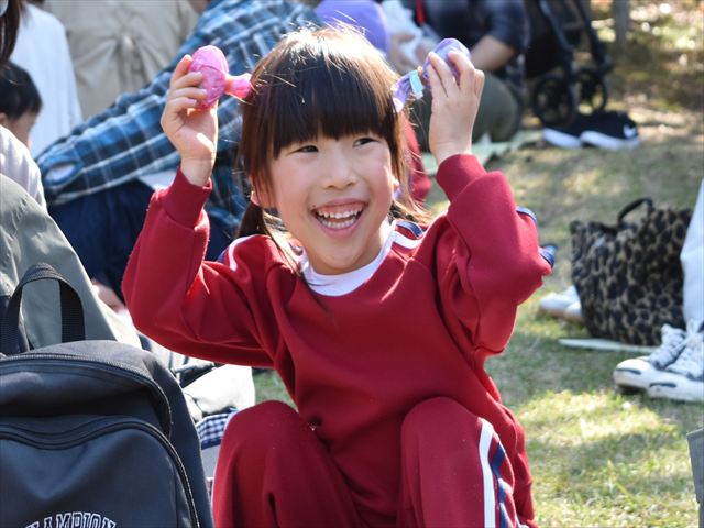 首に掛けてもらうのをとっても喜んで、名前をよばれると笑顔でお立ち台に登っていましたよ![]()