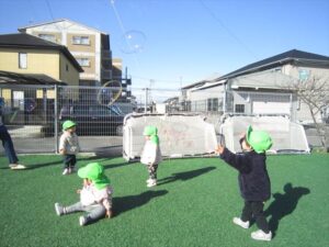 お外大好きな鳥組さん😊 お外大好きな鳥組さん😊 お正月休みも終わって、みんな元気に登園してる鳥組さん 外へ行く準備を始めると、「わ~い!」と大喜び 今日はお外でしゃぼん玉で遊びました 大きなしゃぼん玉とよーいドン!! 「高いね~」「待て待て~」 遠くまで飛んでいくしゃぼん玉を一生懸命追いかけていました 他の日には、幼児組さんと一緒に遊んだり いつも優しくしてくれてありがとう お外でも水分をしっかり取って、これからもたくさん遊ぼうね 2026年1月21日 : 0歳児クラス