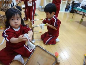 みんなで大掃除★(星・月組) みんなで大掃除★(星・月組) 星・月組さんも毎日使っているロッカーや机、椅子、玩具などを綺麗にしました 机や椅子、床の汚れがどんどん消えていく様子を見て、 「ここも汚れてる〇〇君はそっちをやって」と子どもたちが積極的に綺麗にしようとする姿が見られました とっても真剣に大掃除を頑張ってくれた子どもたち 2026年を気持ちよく迎える事ができそうです 2025年12月25日 : 3歳児クラス年中クラス