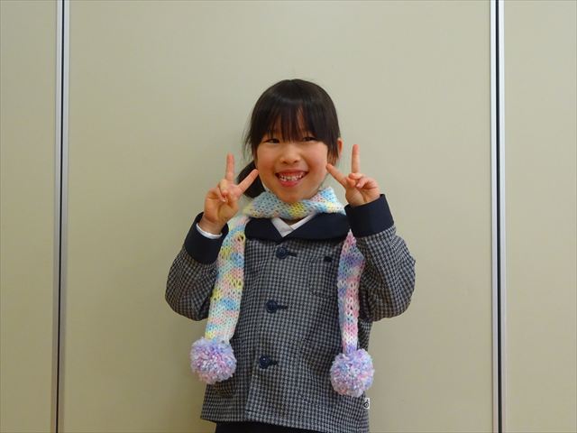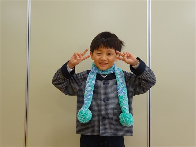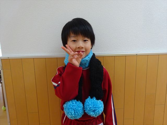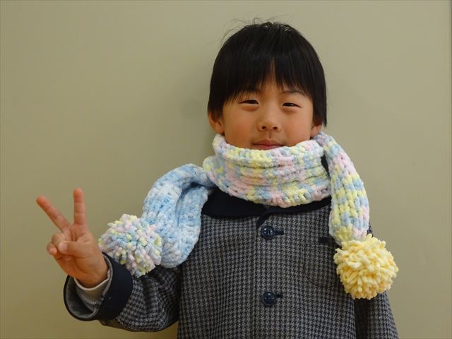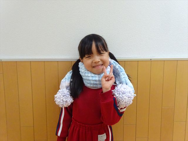 できあがって首に巻いてみると、「あったかーい!」「○○ちゃんのふわふわ!」とお互いに見せ合って嬉しそうな子どもたちでした