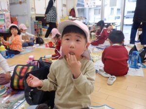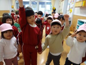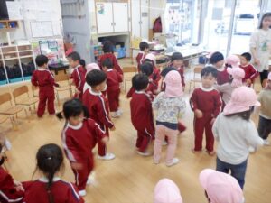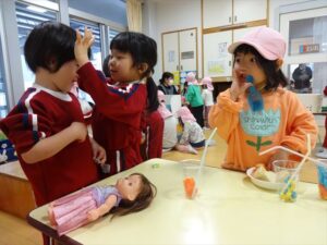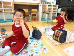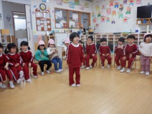 虹組さんは、憧れのお兄さん、お姉さんの遊びを見て、「やりたい」笑顔が溢れていました