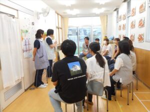 担任より食事の様子や衣服の着脱についてなど、園での子どもたちの様子についてお話ししました