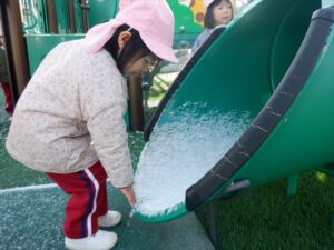 冷たさや、感触などを知ることができて楽しかったね![]()