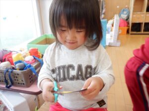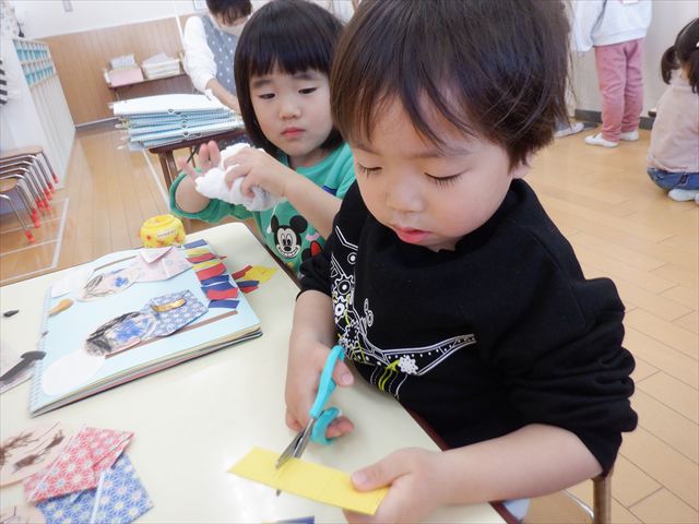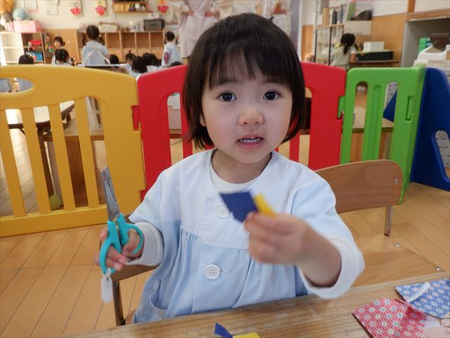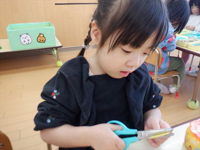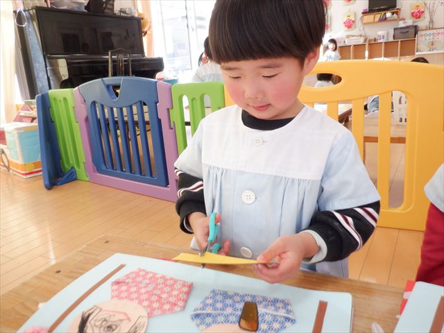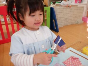 おひな様製作ではハサミに挑戦![]()