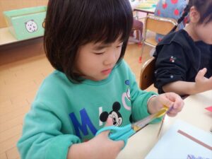 虹組さんは次の学年に憧れをもって、少し難しいことに挑戦していますので、お家でも