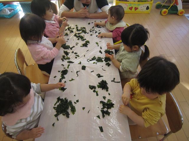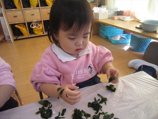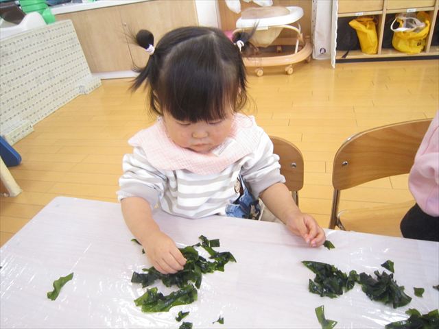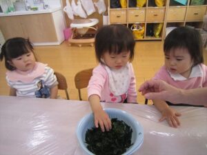ワカメを用いての感触遊び。
