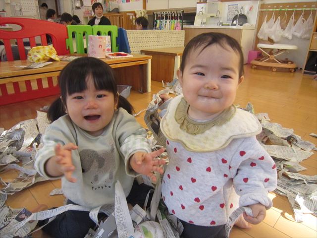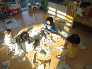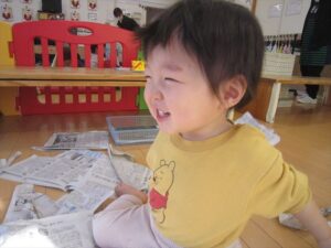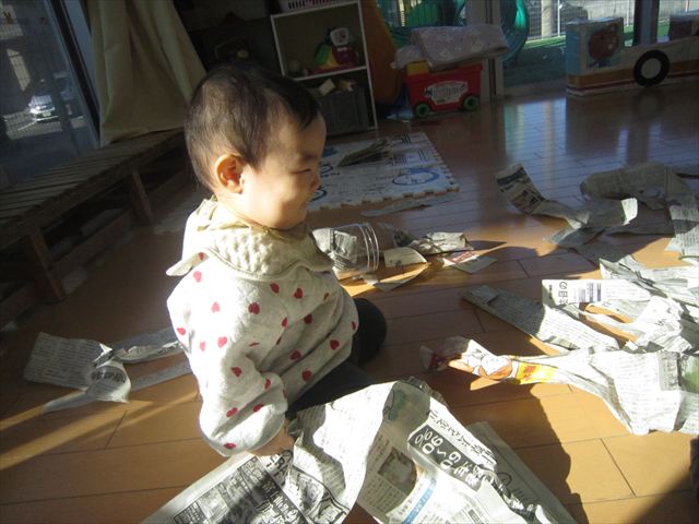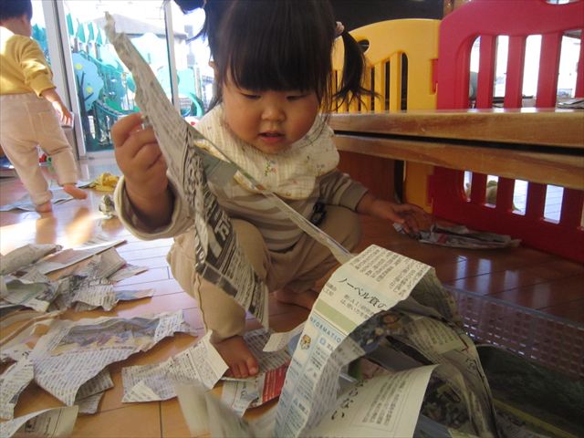 思いきり新聞紙をビリビリビリ~