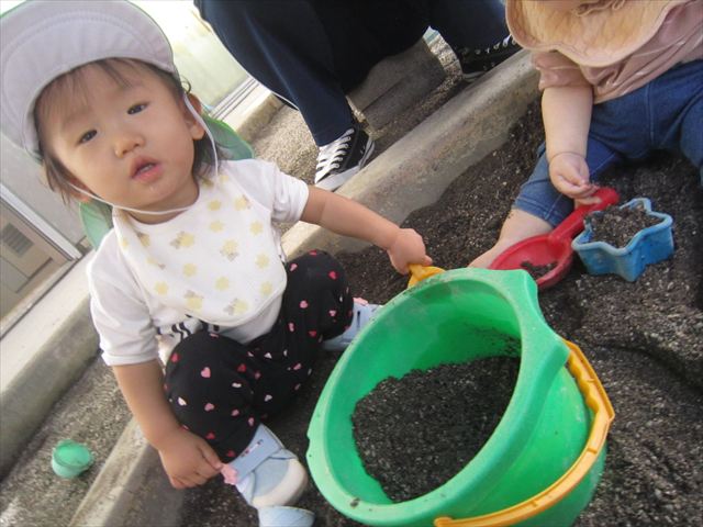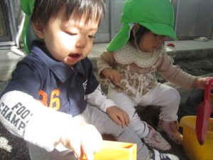 遊ぶの大好き鳥組さん⭐ 遊ぶの大好き鳥組さん⭐ 鳥組さん、初めての砂場遊び いつもの園庭とは違う場所でドキドキしている様子でしたが、 遊び始めたら夢中になっていました スコップや型遊びのおもちゃを使って、砂の感触を楽しんでいました 園庭では、いっぱい体を動かして遊んでいます お部屋では12月の製作でリース作りをしました 指先を使って模様の飾り付りつけを🎵 どんなリースが出来るか楽しみだね これから寒くなってきますが、体調管理に気を付けて過ごしたいと思います 2025年11月27日 : 0歳児クラス