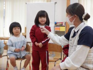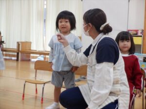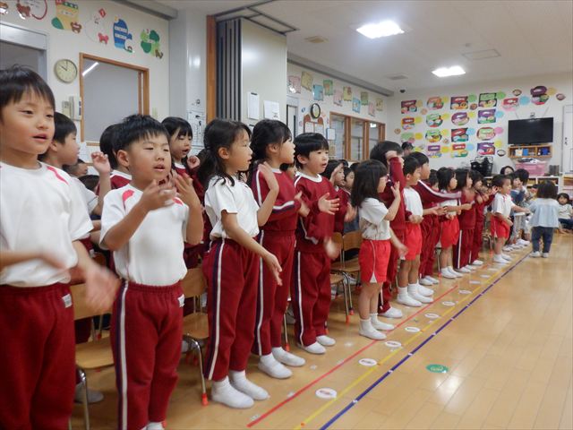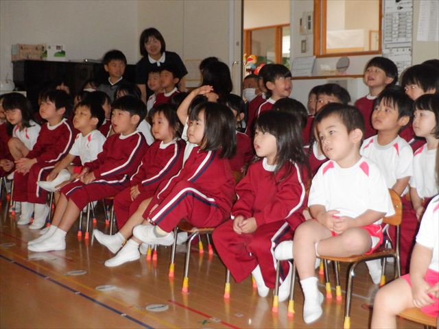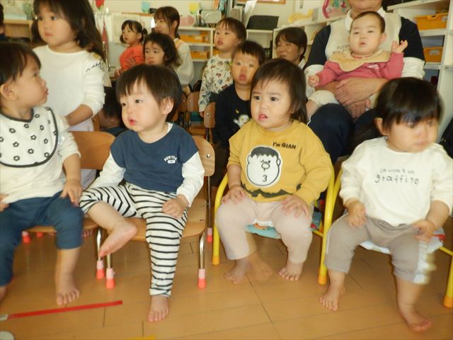 11月のお誕生日会🎂🎉 11月のお誕生日会🎂🎉 11月生まれのお友達のお誕生日会をしました 季節の歌では「こぎつね」「やきいもグーチーパー」を歌いました 幼児組さんたちには大きくなったらなりたいもの、乳児組さんには好きな色のインタビューをしました 保育者からの出し物は、影絵シアター 上から見たり横から見たり正面から見たりすることで見えてくる形に大興奮の子どもたちでした 11月生まれのお友達、お誕生日おめでとう 2025年11月13日 : お誕生会全クラス