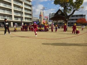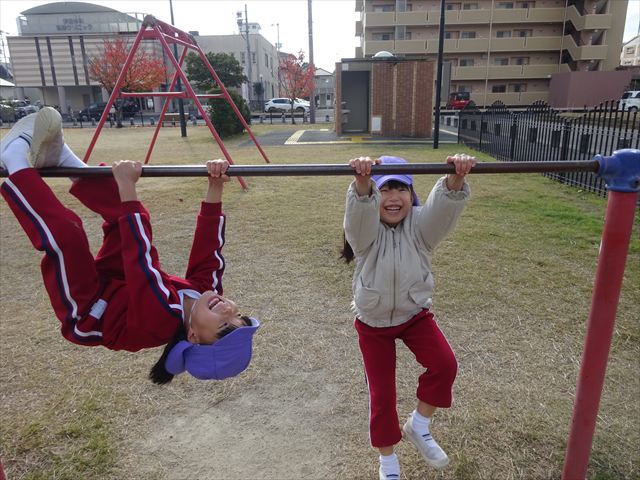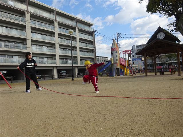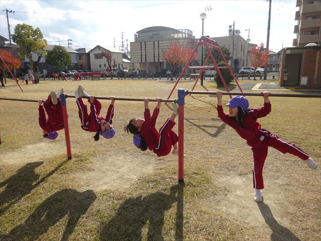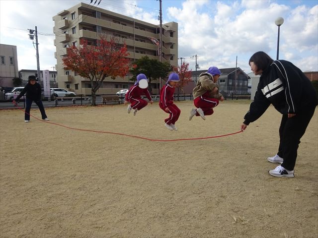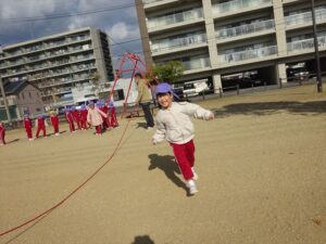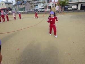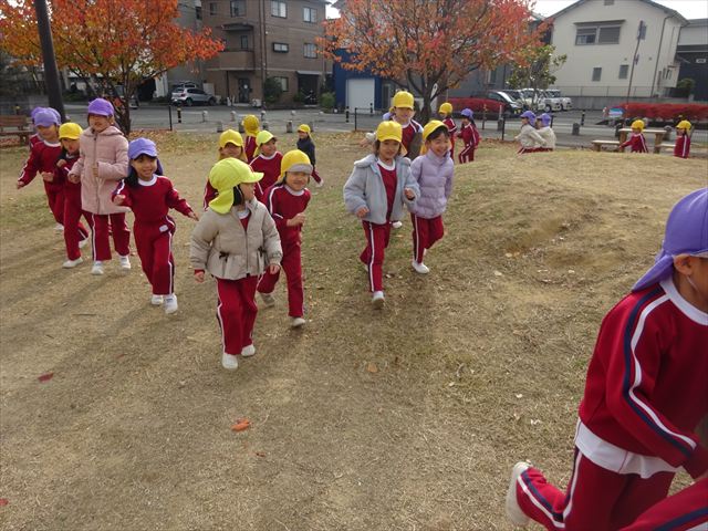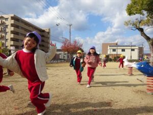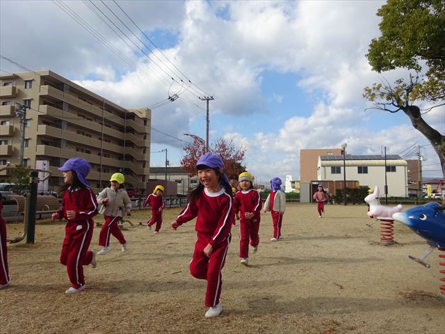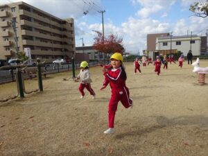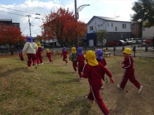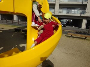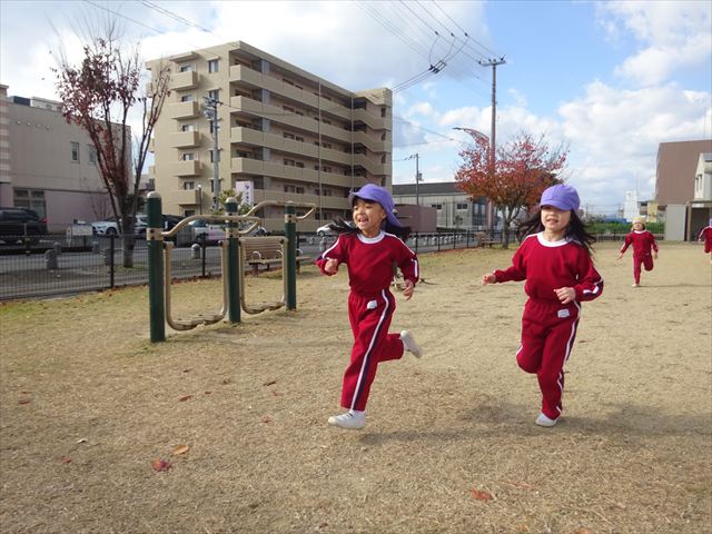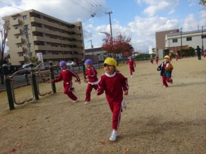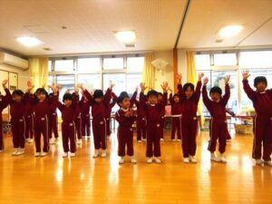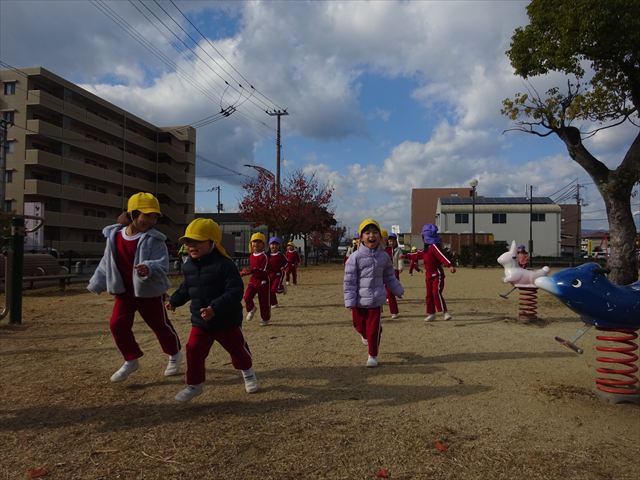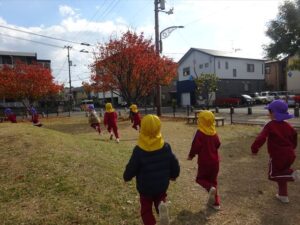 と保育者が声を掛けると、朝からウキウキ気分の子どもたち