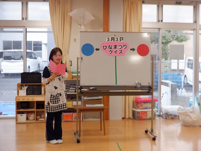 保育者からの出し物は『🌸ひなまつり2択クイズ🌸』